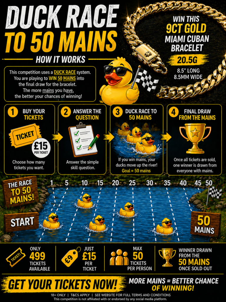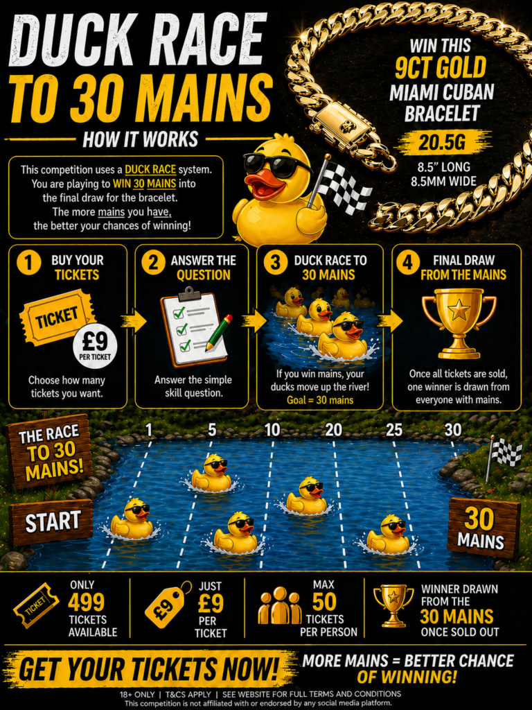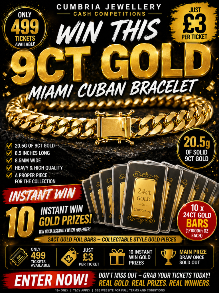 Win a 9ct Gold Miami Cuban Bracelet + 10 x 24ct Gold Bar Instant Wins (20.5g) | £3 Entry |