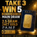 Take 3 WIN 5 ENTRIES INTO THE MAIN DRAW FOR THE 2.5 Gram 24ct GOLD PAMP BAR