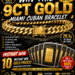 Win a 9ct Gold Miami Cuban Bracelet + 10 x 24ct Gold Bar Instant Wins (20.5g) | £3 Entry |